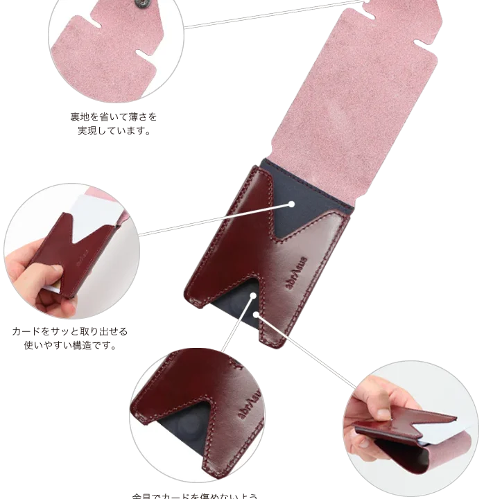 「薄い財布 classic」とマッチするよう、同じ革を使用。財布とカードケースに統一感が生まれます。