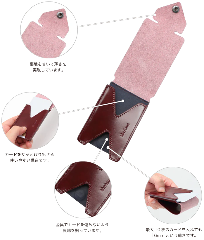 「薄い財布 abrAsus(アブラサス)」とベストマッチのカードケース「薄いカードケース」。薄い財布に入りきらないカード類を持ち運ぶための、セカンドカードケースです。