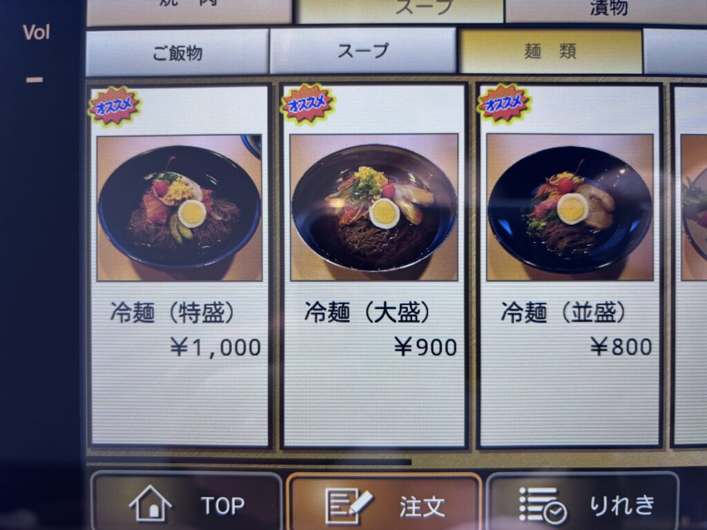 メニューです。冷麺は3種類。大きさの違いみたいです