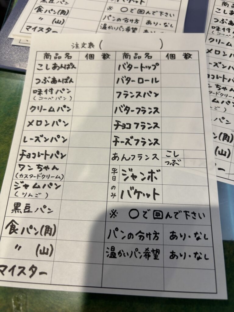 順番が来たら、店内に入り店員さんに注文表を渡します。その店員さんがパンを準備してくれます。パンを確認してお会計です。おつかれさまでした^^