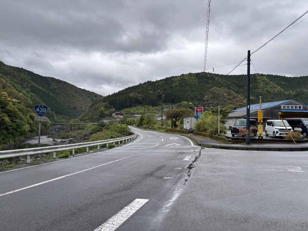 左が439号。青い逆おむすび標識です。情報どおり車屋さんがありますね。