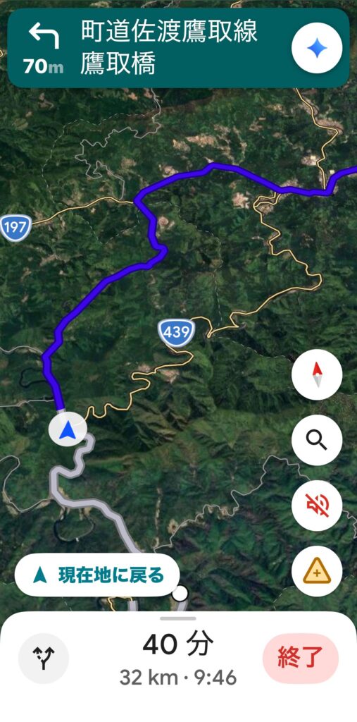 Googleマップは、439号ではなく26号で早めに197号に合流するように言っています