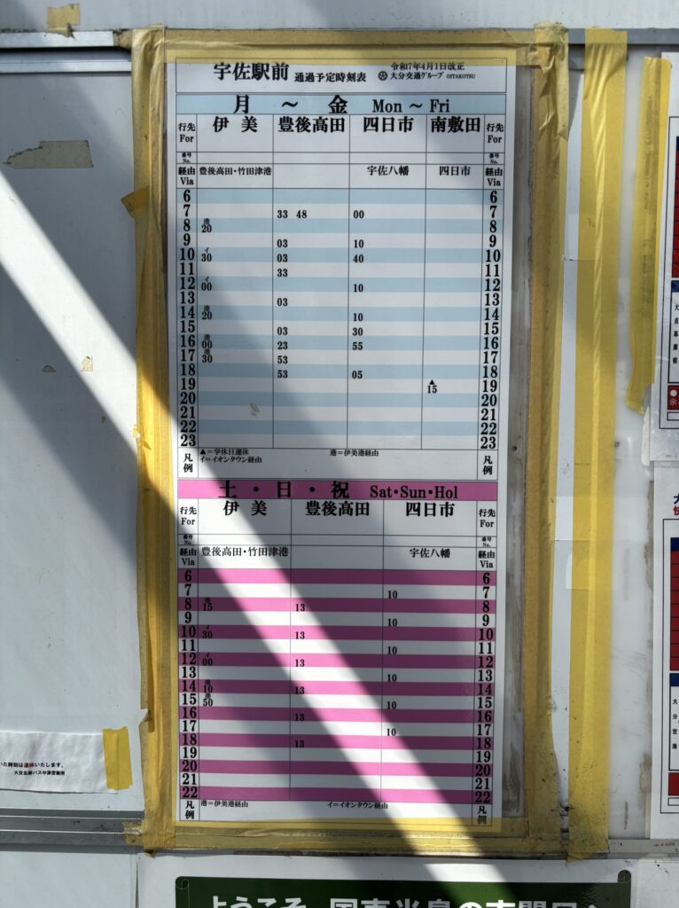 宇佐駅を出て左側にバス停があります