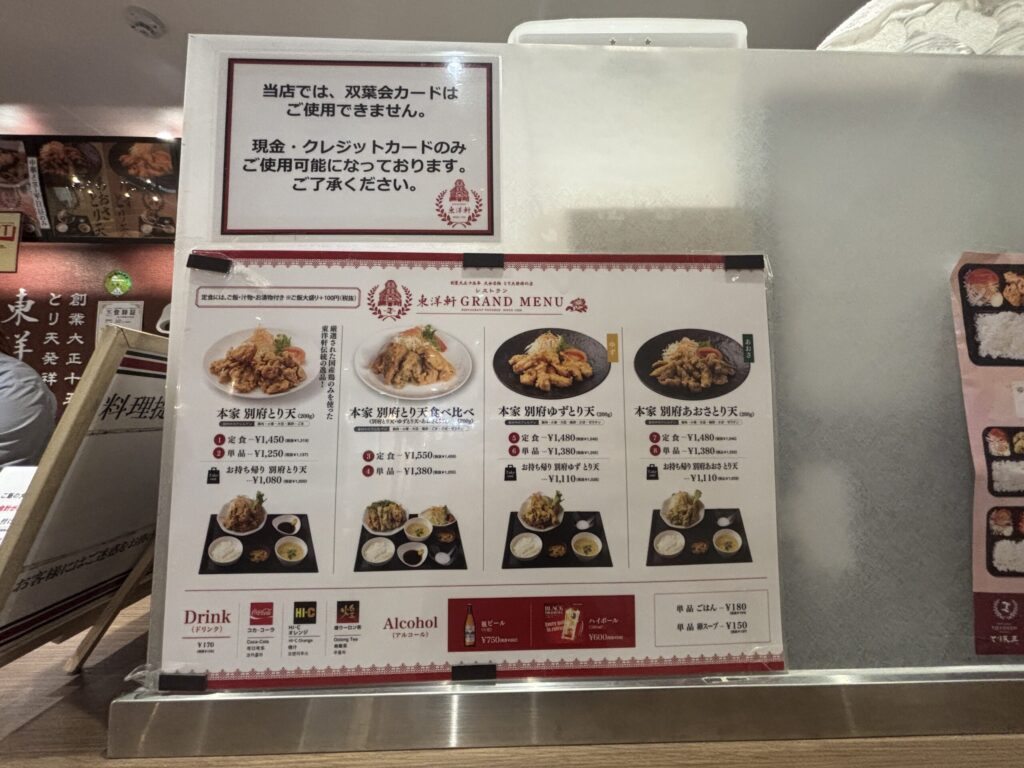 フードコート内の店舗ですからメニューは限られてしまうのですが、あの東洋軒のとり天を食べることができます