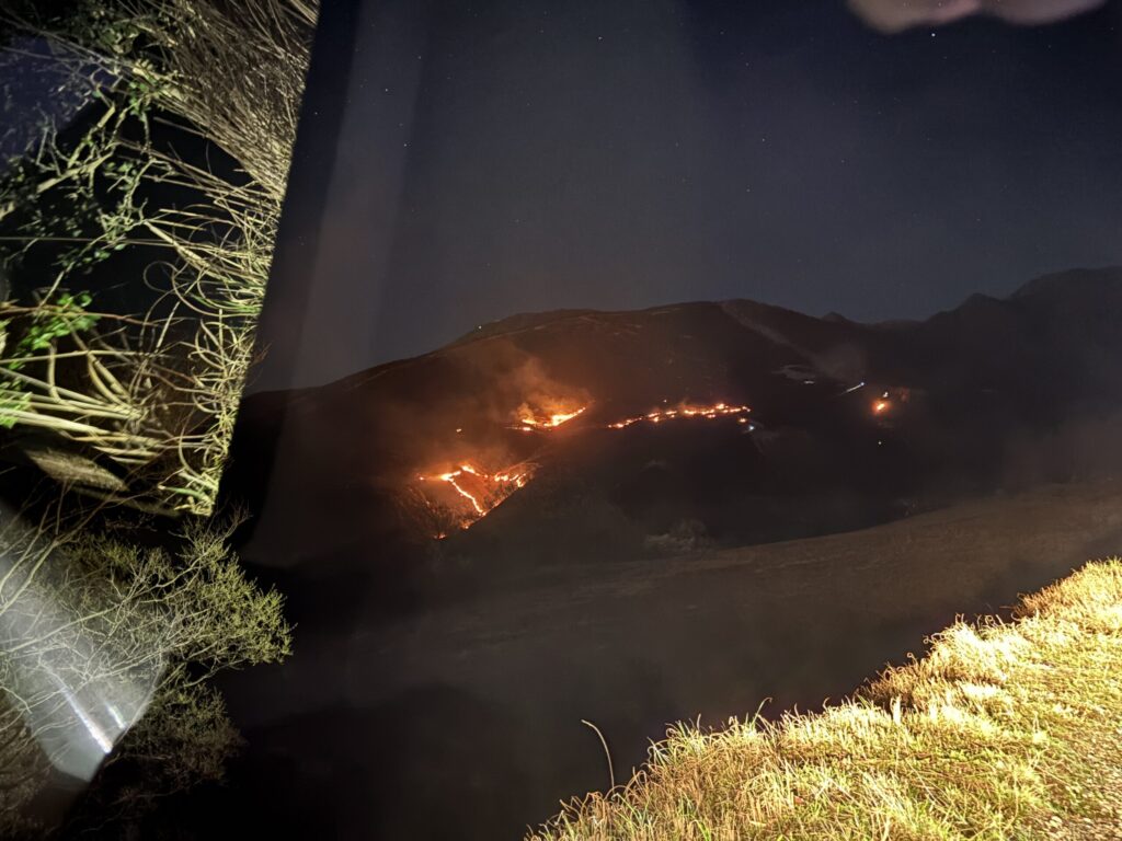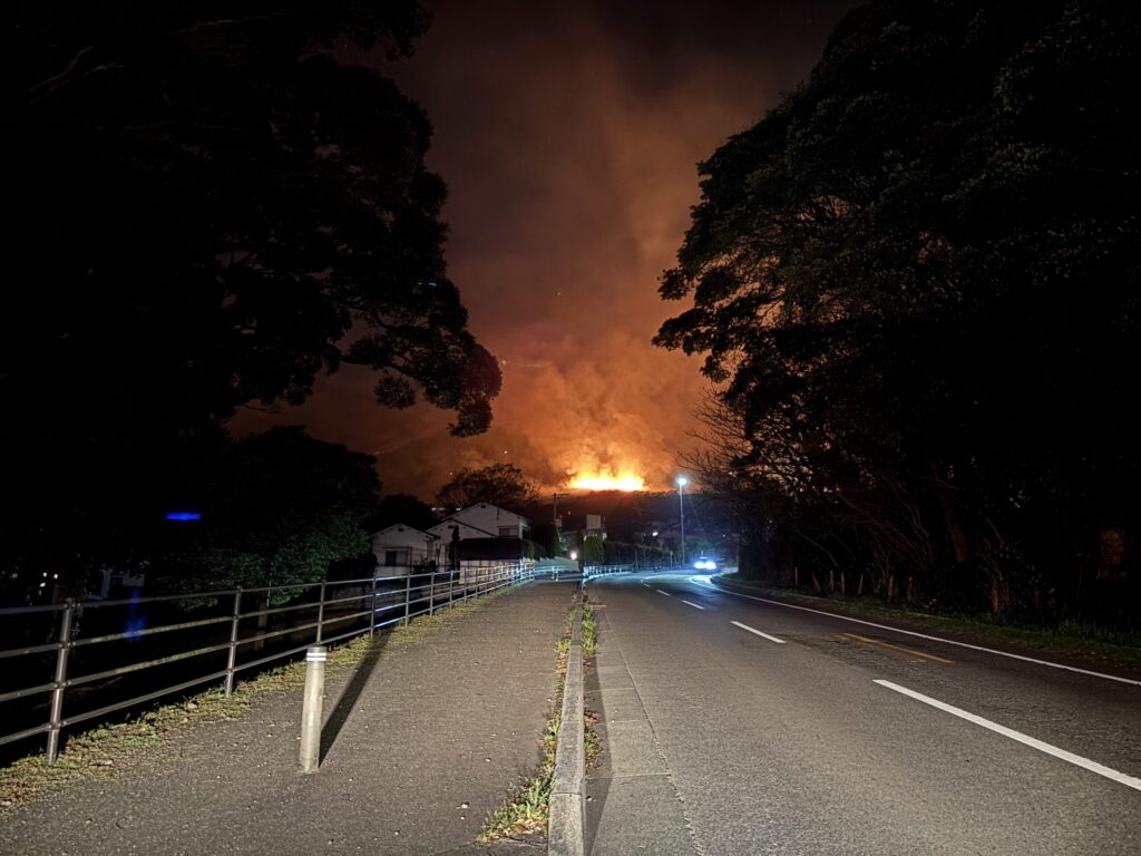 今年は18時30分ごろ、キレイに端っこが燃えているのが見えたので、「近くまで行って見たくなり」出かけてきました(この写真、撮り忘れ…💧)