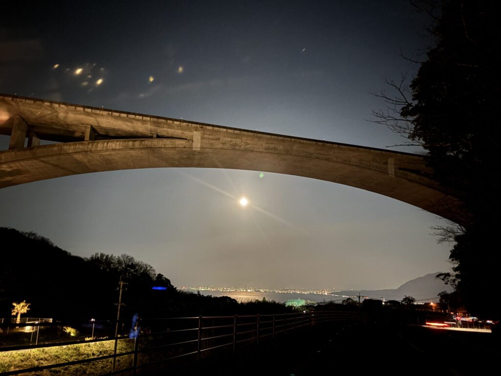 月が出ていました。別府湾に月光が反射していました