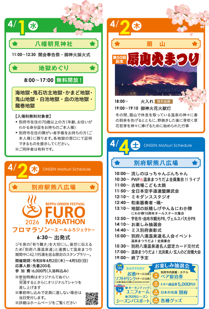 別府の春のお祭り「別府八湯温泉まつり」が開催中です