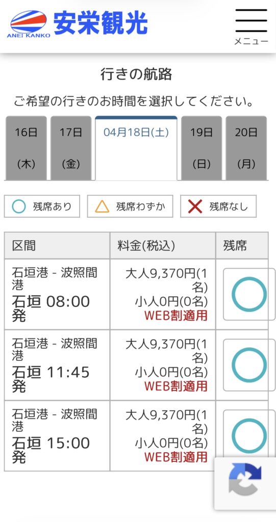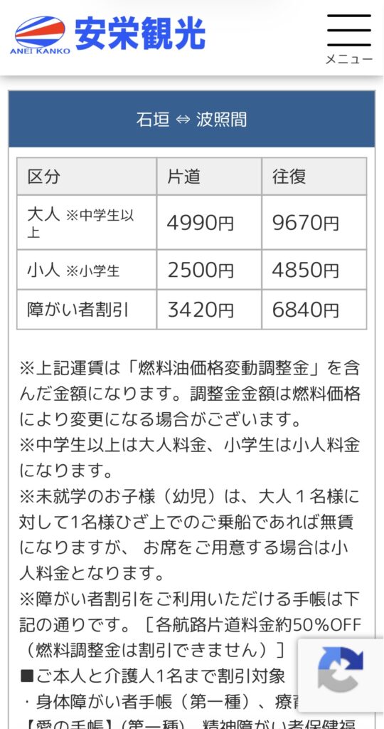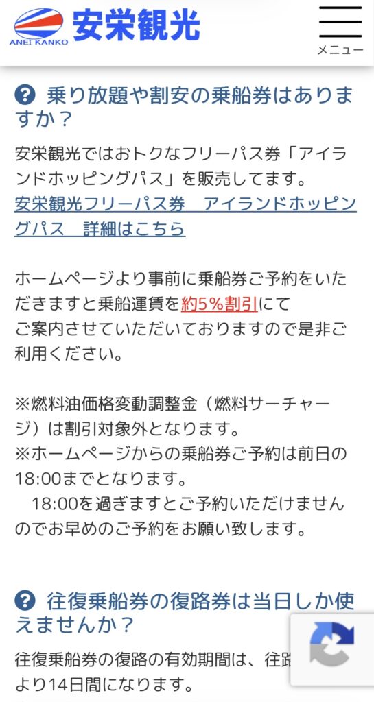 安栄観光の乗船券は前日までのWEB予約で5%引きに^^