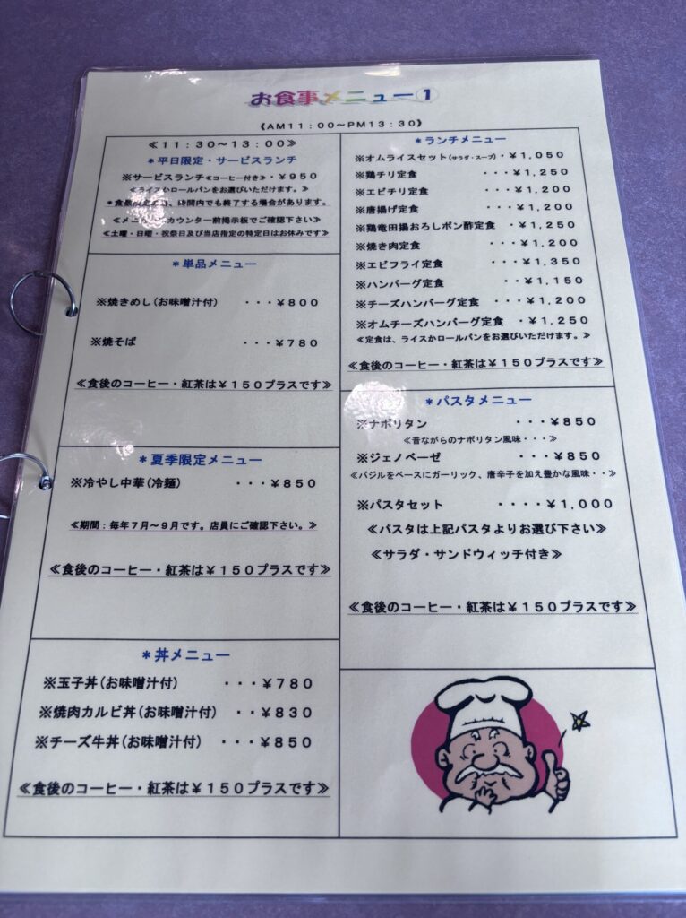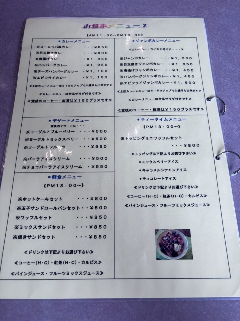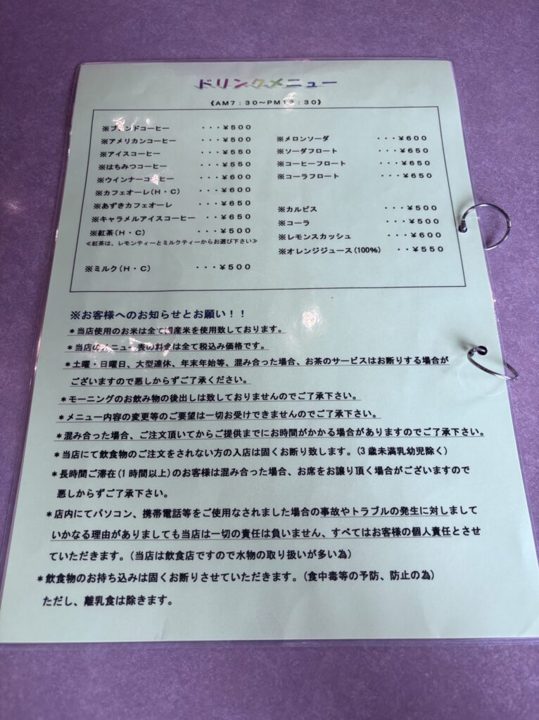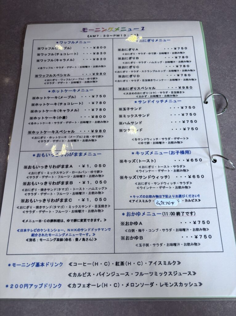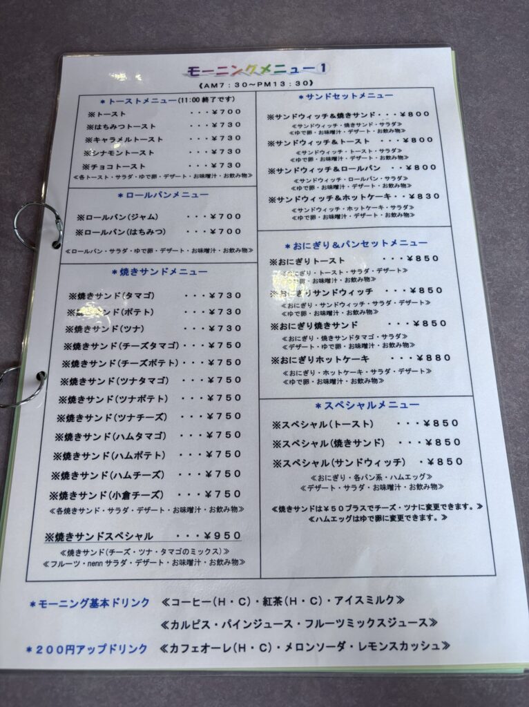 メニュー。モーニングタイムが長い!ランチタイムの終わりと同じ!!