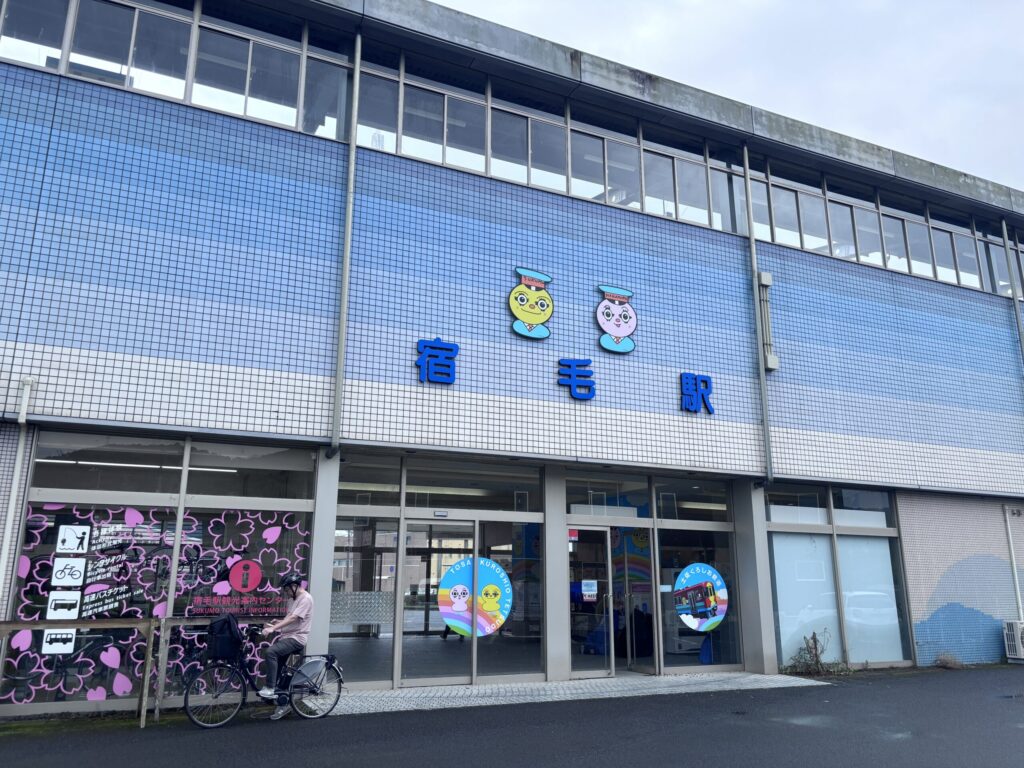 高架になっている宿毛駅の1階です。レンタサイクルも借りられます🚲️