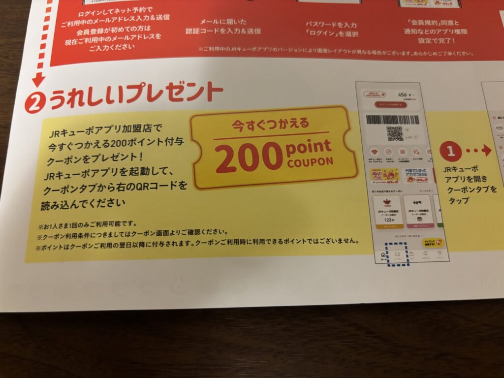 JRキューポ 200ポイントクーポンがもらえます😆